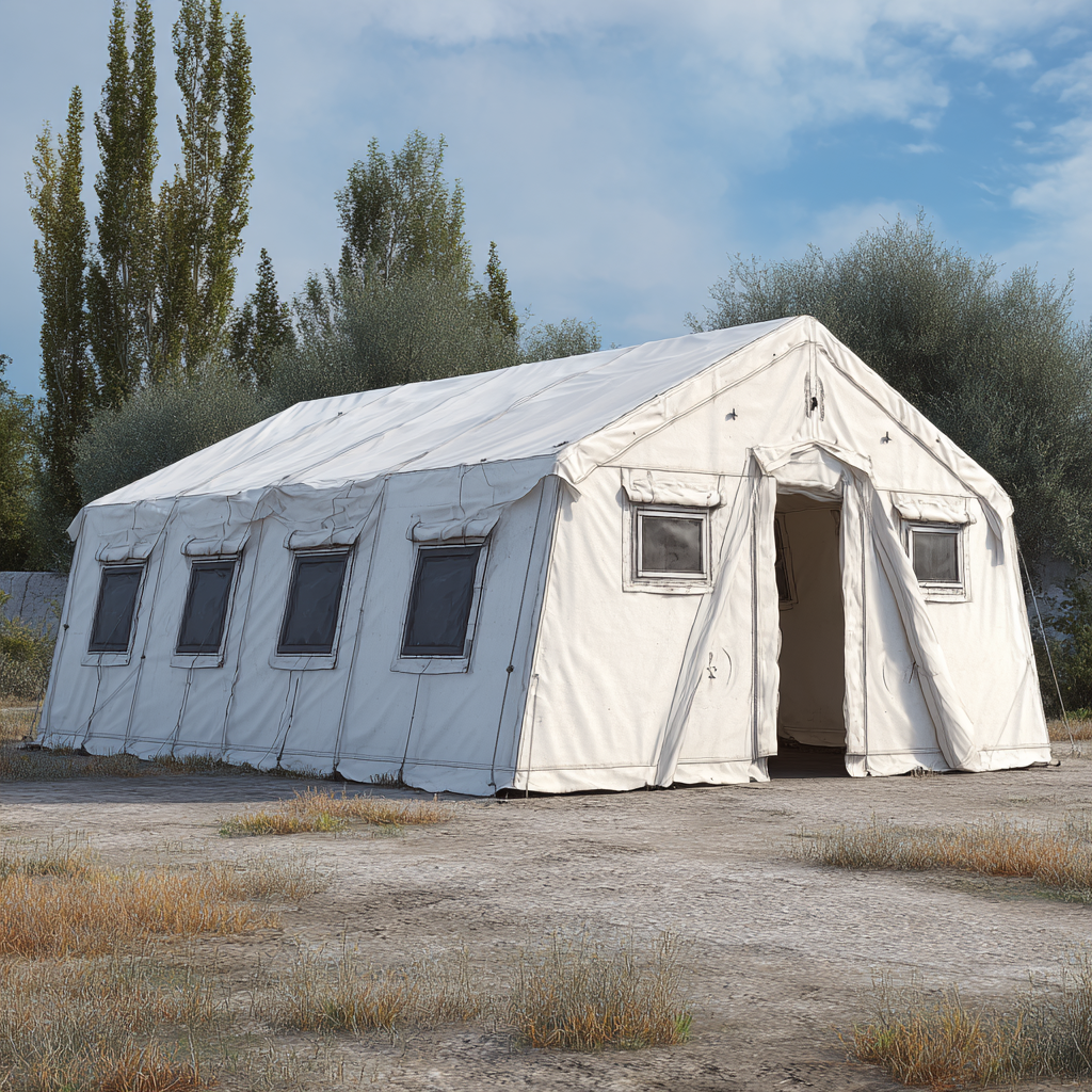 Afet çadırlarımız; uzun süreli kullanıma uygun, dayanıklı ve sürdürülebilir barınma alanları oluşturmak için tasarlanmıştır. Üretimde kullanılan özel kumaşlar, dış etkilere karşı maksimum koruma sağlarken; iskelet yapısı yüksek rüzgâr, yağmur ve sıcaklık değişimlerine karşı stabil kalacak şekilde güçlendirilmiştir. Hafif ve taşınabilir yapısı sayesinde operasyon bölgelerine kolayca sevk edilebilir, modüler tasarımıyla farklı büyüklüklerde yaşam alanlarına dönüştürülebilir.